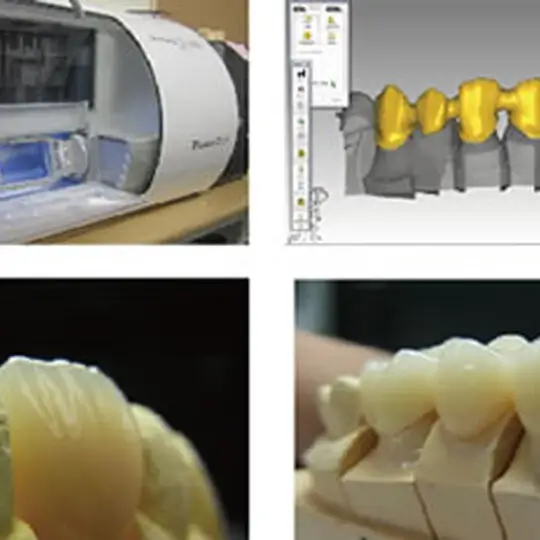 CAD/CAM冠は、ハイブリッドレジンブロックを削り出して製作するため、耐摩耗性・耐着色性に優れ、品質も安定しやすい補綴物です。金属を避けたい患者様に向けて、費用面や金属アレルギーへの配慮と、自然な見た目を両立するメタルフリーの選択肢をご提案します。