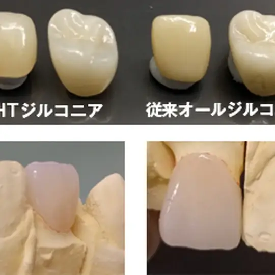 ジルコニアは光を透す性質があり、天然歯のような透明感と自然な色味を再現できます。さらに高い強度で欠けにくく、変色や摩耗も少ないため長く使える素材です。軽くて身体になじみやすく、金属アレルギーの心配が少ない点も特長です。